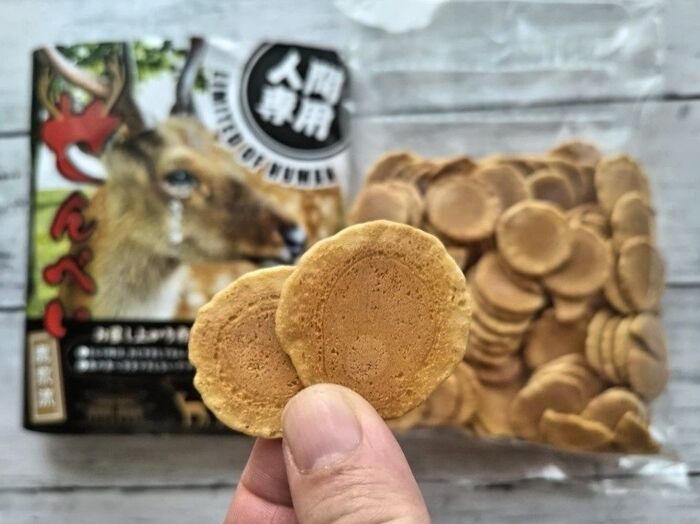 そして、肝心の【人間専用鹿せんべい】は、コイン大の大きさで甘くて素朴な美味しいおせんべい。