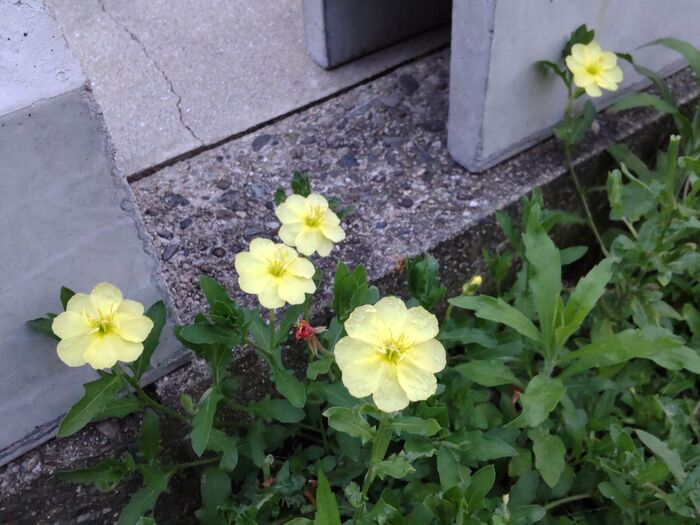 コマツヨイグサは非常にたくましい植物ですね。良くない環境でも自生して開花する姿は素晴らしいです。