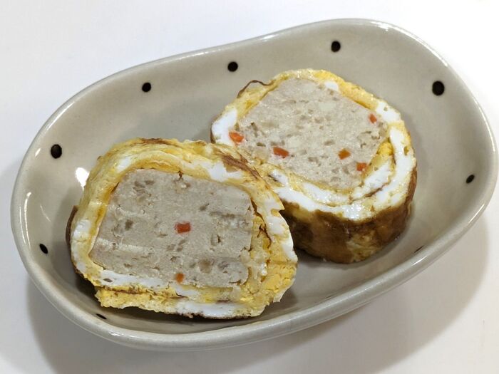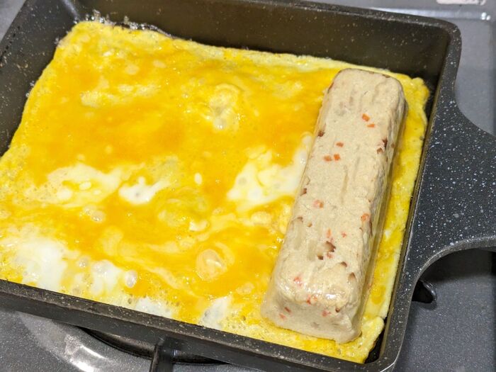 こちらはとてもシンプルで、薄焼き卵に豆腐バーを巻き付けちゃいました(笑)。