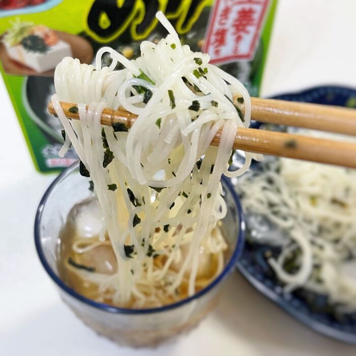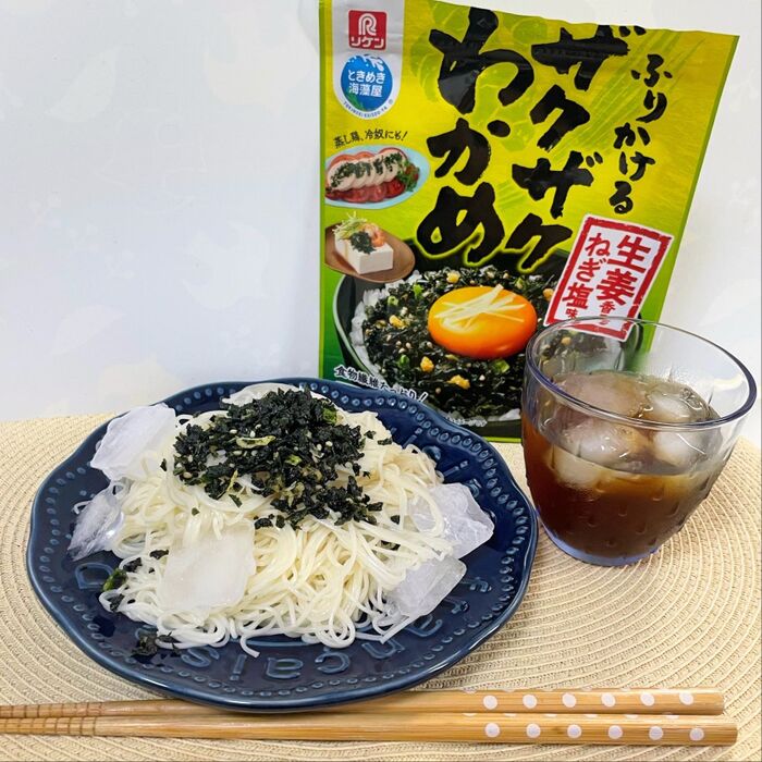 「ふりかけるザクザクわかめ」をトッピングして、しょう油をかけて食べてみると、生姜もねぎも感じられて美味しいです。