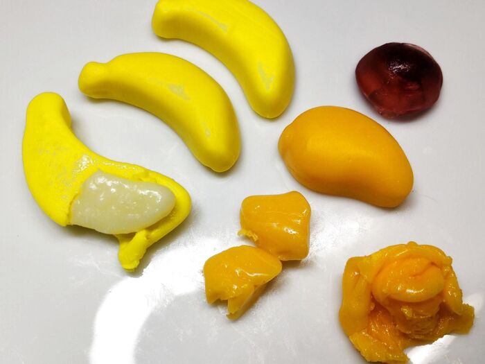 触り心地も、グミだけに面白い感触で、それぞれの果物別の『香り』まで楽しめるんです!