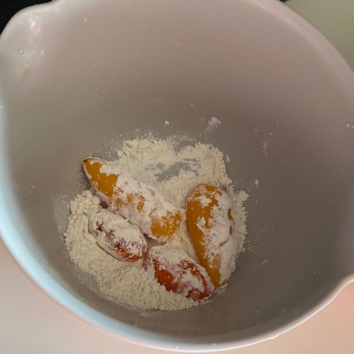 ミニサイズのパプリカなのでそのままカットせずに詰められるので良いですよ。