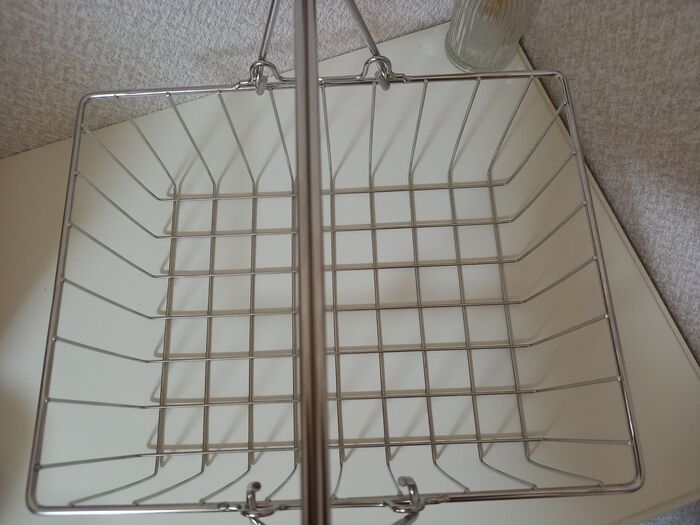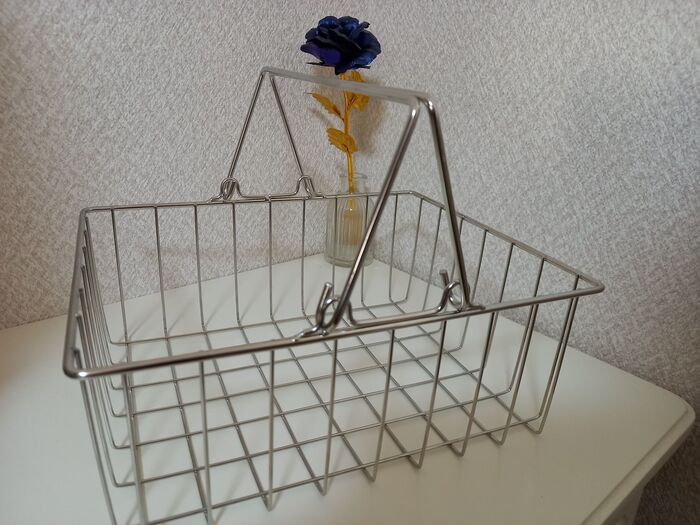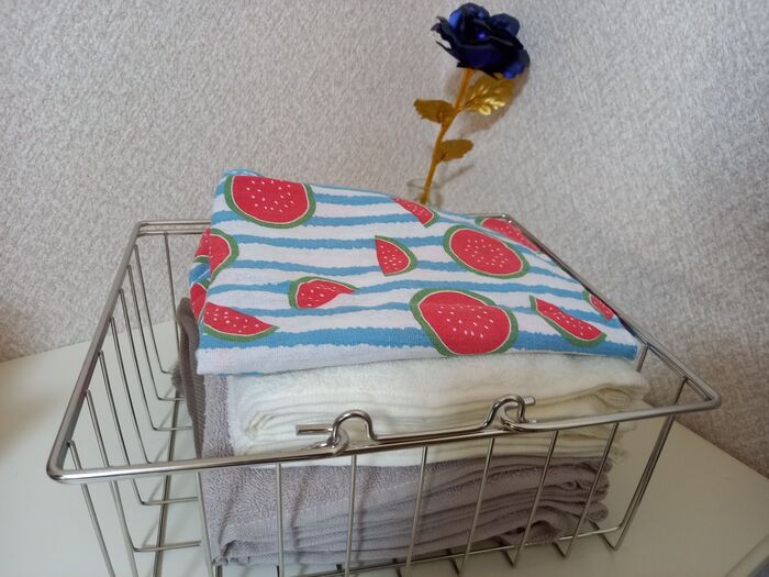 たくさんハンドタオルを使う夏にお役立ちの3COINSのワイヤーステンレスレクタングル収納、ぜひおすすめです☆