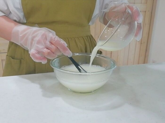 ※寒天液から湯気が出てるようなら冷ましてからカルピスを加える。