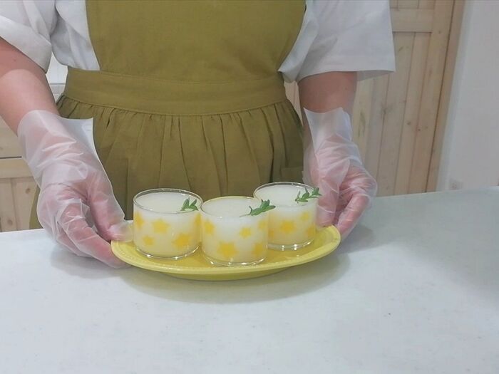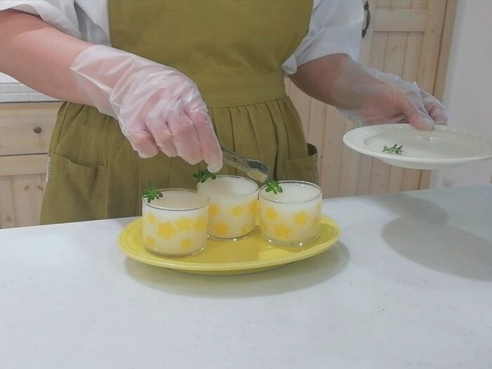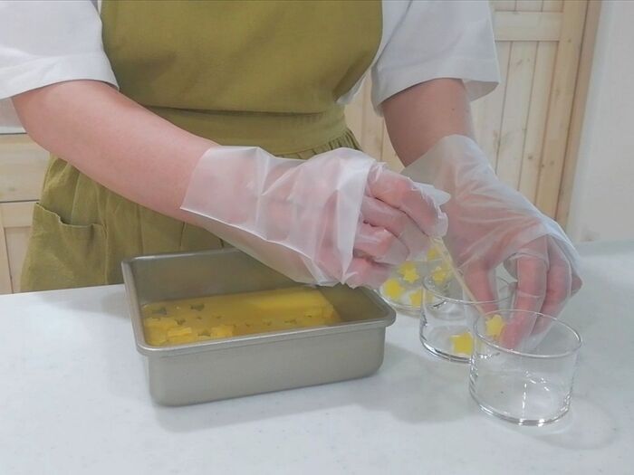 ※オレンジ寒天は薄く仕上がるようにする。