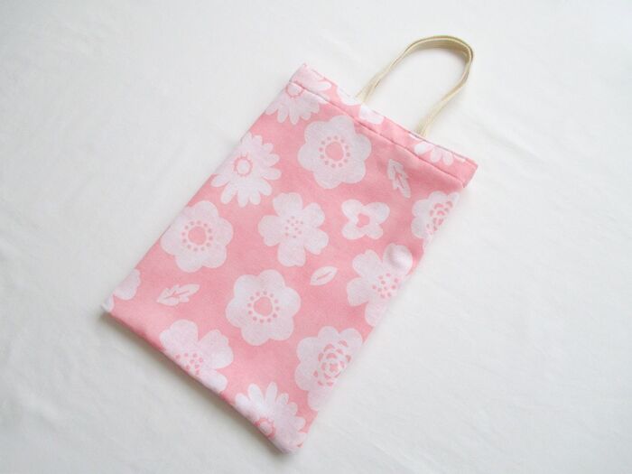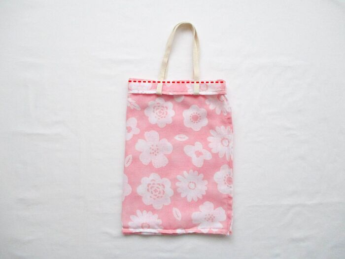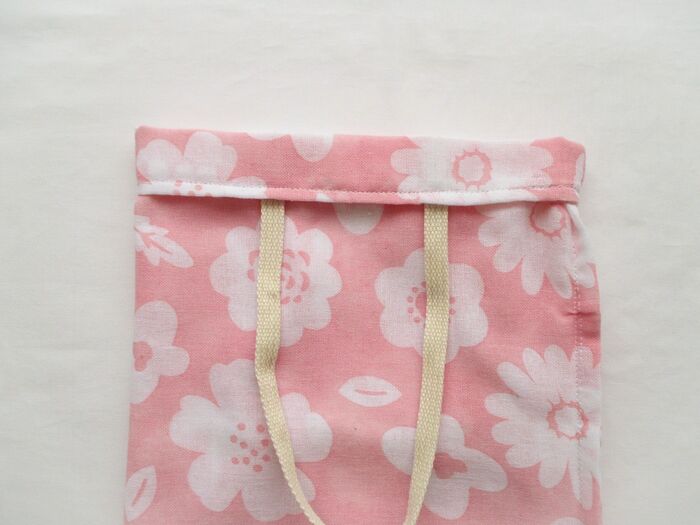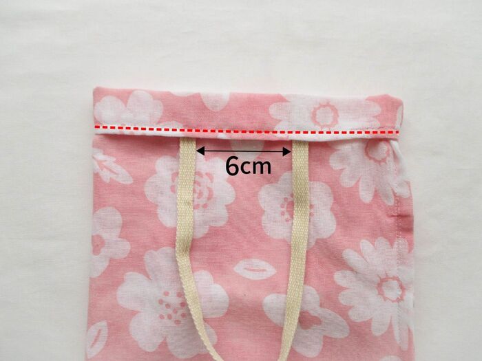 間隔を6cmあけて持ち手のかばんテープを差し込みます。