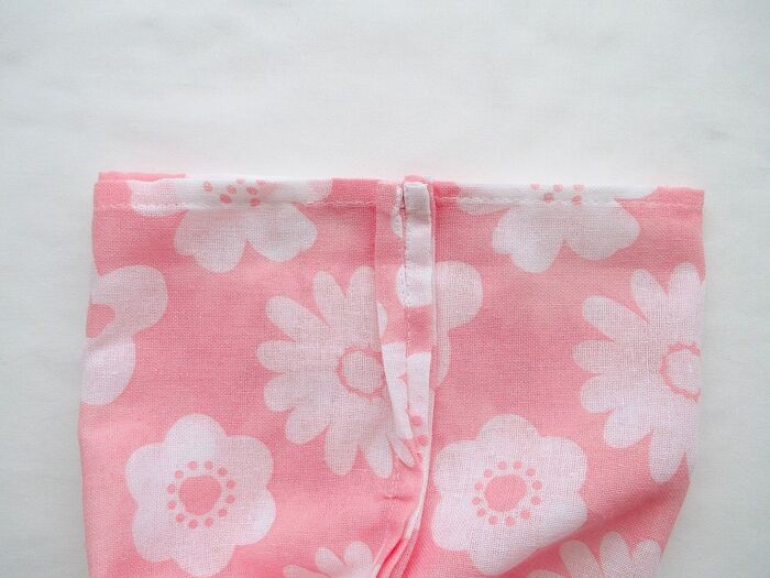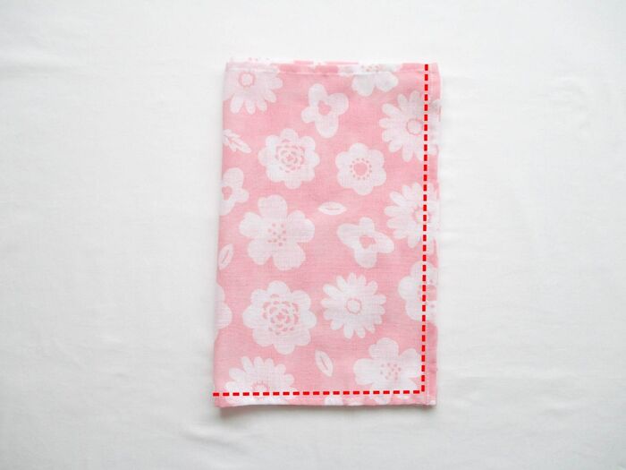 手ぬぐいの縫い目に沿って縫うと、見た目もすっきりします。