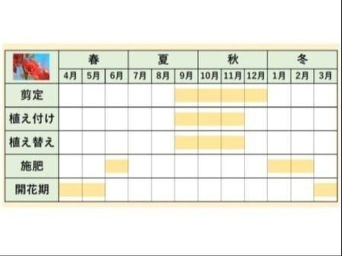 肥料の与え方としては、1月から2月に寒肥として緩効性肥料を与え、開花後の4月から5月にお礼肥を与えます。ボケには多くの品種があり、赤、白、ピンク、オレンジなどの花の色に、一重咲きや八重咲きの品種もあり、色も形も様々です。日本原産や中国原産のものから、品種改良によって200種類以上の品種が存在します。一般的には3月から5月にかけて咲きますが、品種によっては11月から1月に咲くものもあるので開花時期に注意しましょう。ボケの剪定は、花が咲き終わった4月下旬から6月頃と、葉が落ちた11月から12月頃に行います。花後には咲いた花を摘み取り、長く伸びた枝を短く切り詰めます。落葉後の剪定では、枯れた枝や不要な枝を切り取り、風通しを良くします。花を長持ちさせるためには、適切な水やりと剪定が重要です。