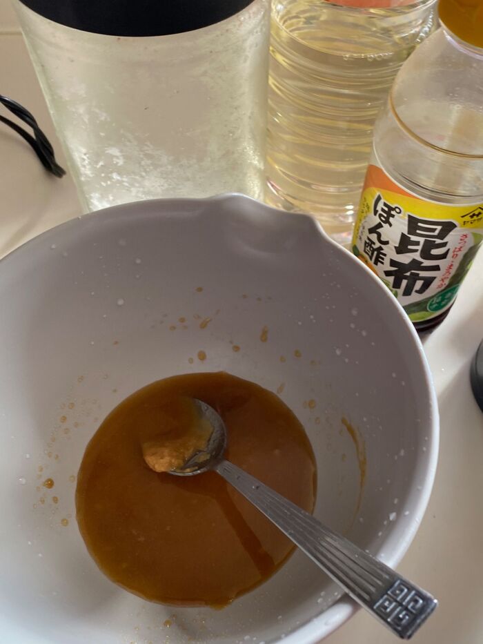 ②ボールに味噌、ポン酢、砂糖、みりんを加え混ぜ、合わせタレを作ります。