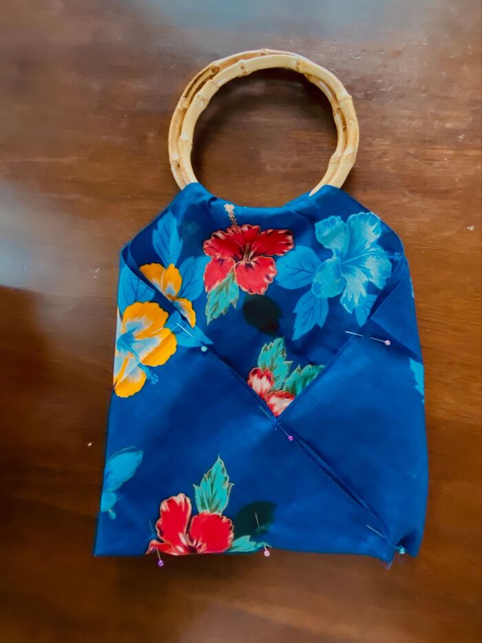 まち針で写真のように6箇所留めます。留めたところを、縫い留めをします。
