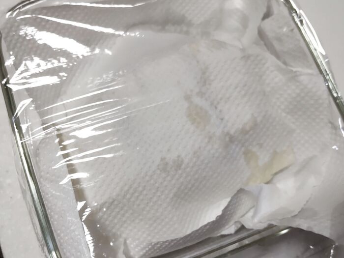 •耐熱容器は、底部分が約15㎝の正方形で高さが約5㎝のものを使用しています。