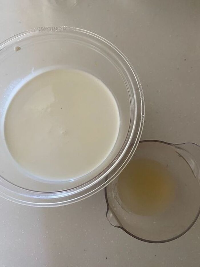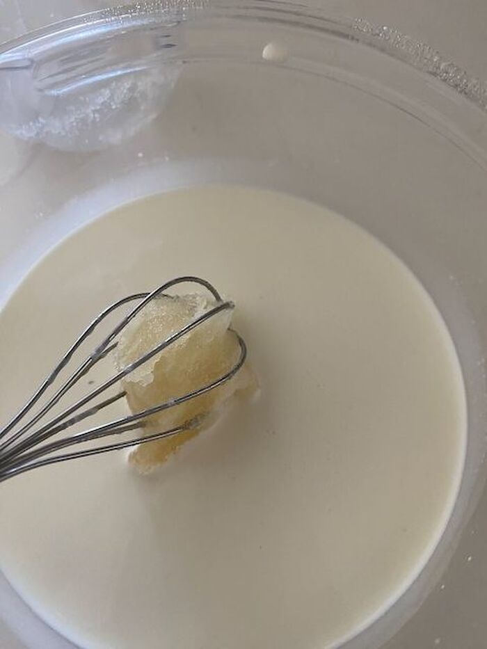 ゼラチンは大さじ2の水でふやかし、牛乳、豆乳クリーム、はちみつは、耐熱容器に入れ