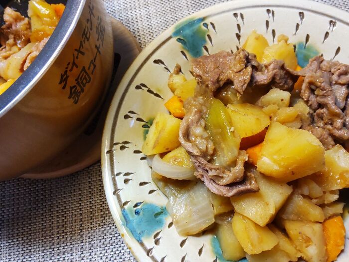・調味料は水と焼肉のたれだけであり、焼肉のたれを使ったとは思えない肉じゃがのお味が楽しめる。