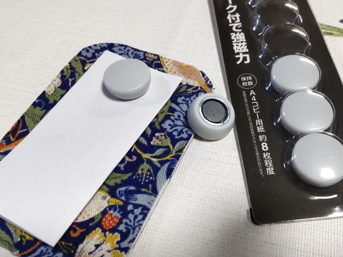 手作りしたマグネットの上に、ダイソーで入手した強力なマグネットを使ってメモを貼り付けています。