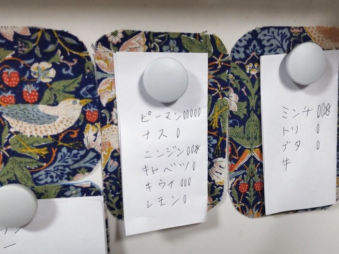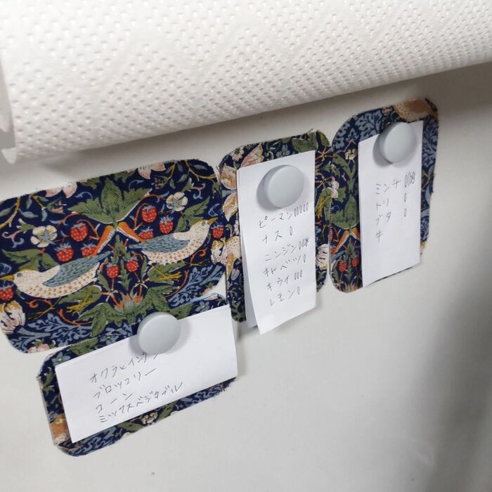 メモだけを貼り付けるよりも、気分が上がるし、冷蔵庫の側面などに貼っておくことで、ちょっとしたスペース作りにもなりますね。