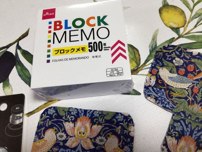 使用したメモ用紙は、ダイソーで入手した500枚入りのブロックメモを使用しています。このメモ用紙を半分に折って利用しています。