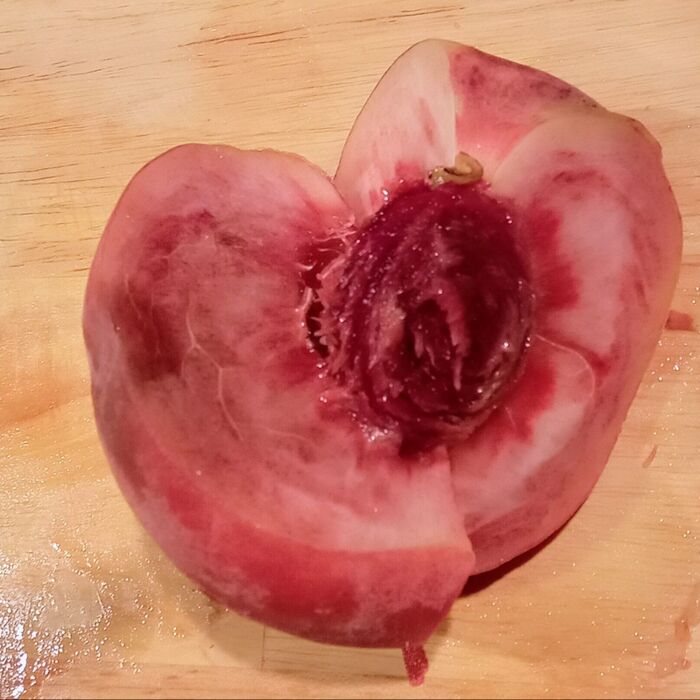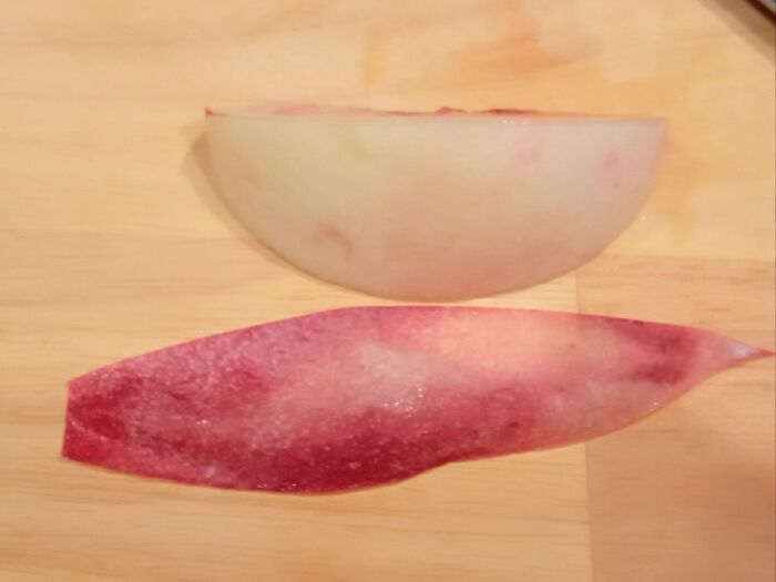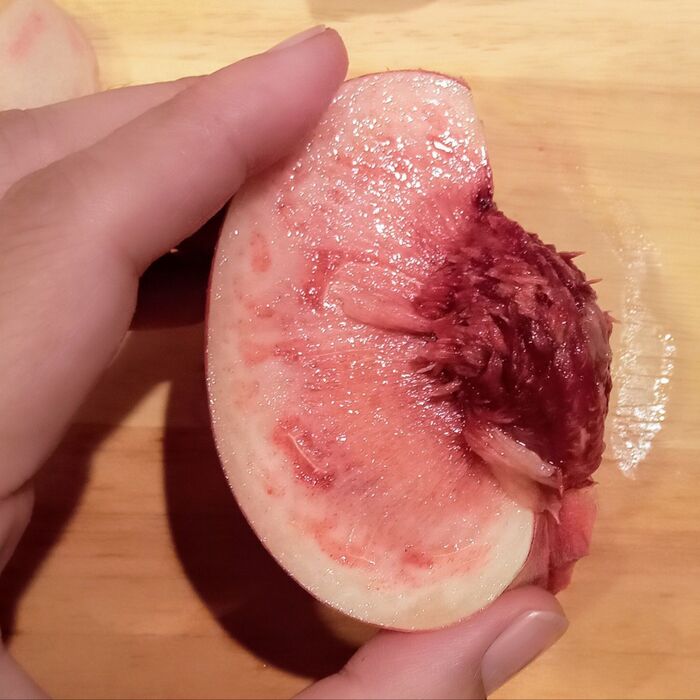 3日後に同じ桃を購入し、直に剥いたら硬くて包丁でないと剥けなかった(泣)