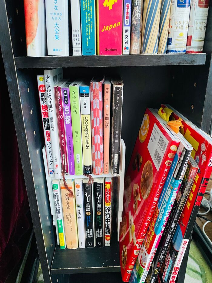 こんな感じで本棚の空間を利用して、文庫本を2段に収納できる棚です。