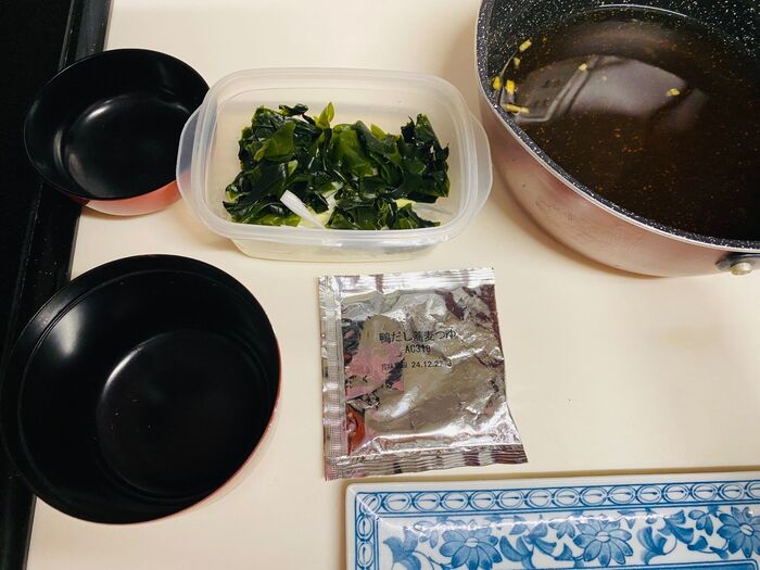 賞味期限内なのでちらし寿司のお吸い物にしました。