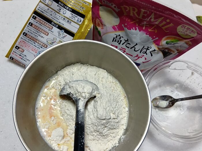 ごく普通のスキムミルクには、本来、鉄分やコラーゲンはほとんど含まれていません。今回、使用したスキムミルクには、珍しく鉄分やコラーゲンなども入っています。