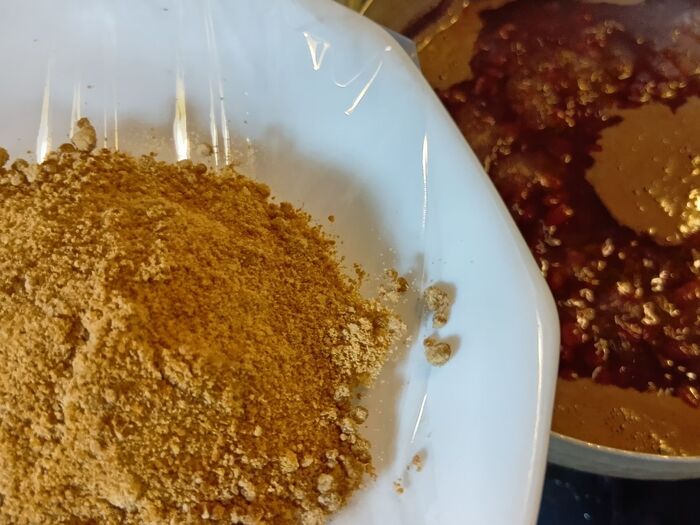 餡は、さとうきび100%の砂糖も加えて作っています(上白糖250gとさとうきび100%の砂糖50gです)。