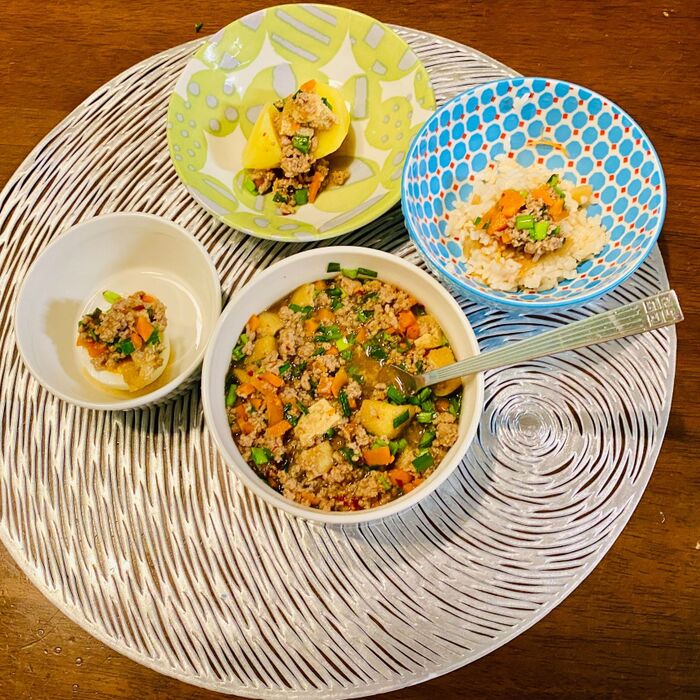 挽肉は豚肉、鶏肉、牛肉なんでも美味しくできますよ。