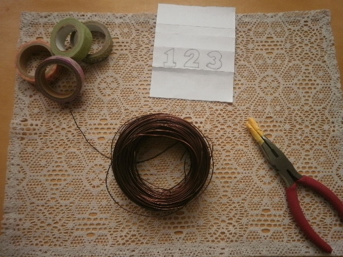 細めのワイヤーとマステ、作りたいモチーフの形を