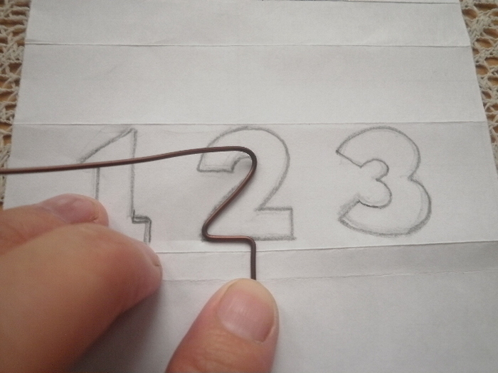 大きさをそろえるためにも形を必ず紙に書いてからワイヤーを曲げて作りましょう。