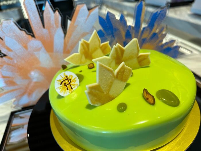 鉱物の結晶の外観とマットな質感が見事に再現されたケーキ。