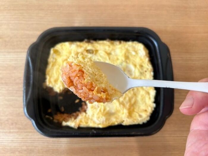 スプーンですくうと、ケチャップライスと卵がしっかりと密着し、ちゃんとオムライスですね。