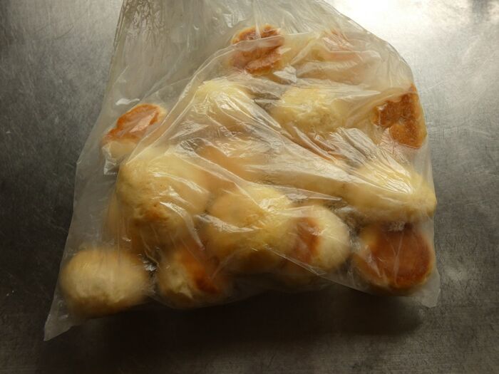 あら熱を取ったらポリ袋に入れます。バター(仕上げ用)をからめ、グラニュー糖をまぶしたら完成。