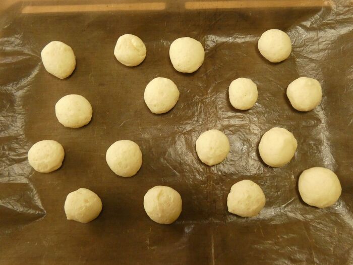 生地を16等分にして丸め、天板に乗せてオーブン180度で13分くらい焼きます。
