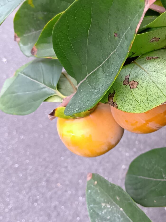 この柿も沢山実がなっていますが、成熟した柿の木は、豊富な果実をつけることがあるそう。鉢植えでこれだけ柿がなるので、大木となれば、かなりの数の柿が落ちてきますよね!