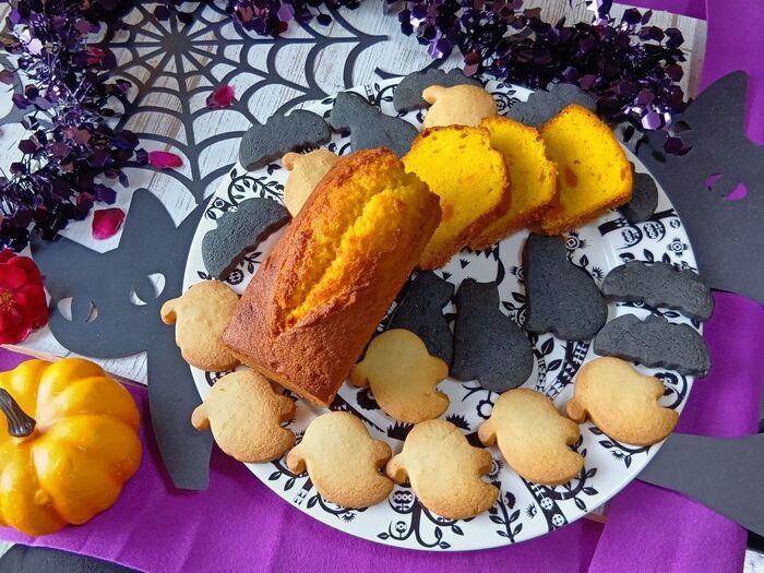 •坊ちゃんかぼちゃは、非常に簡単に(電子レンジで加熱するだけ!)ケーキの材料として使えます。とても簡単にハロウィンのパウンドケーキが作れます。
