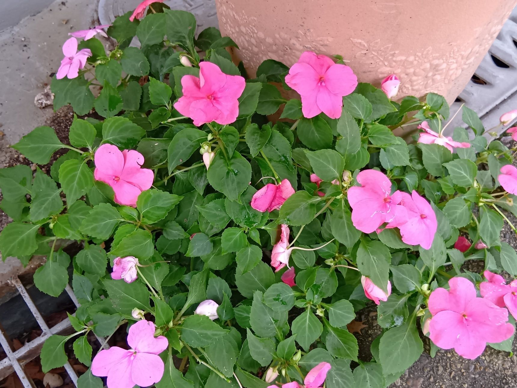 インパチェンスは様々な品種があり、小さなバラを思わせる八重咲き品種が人気のようです。