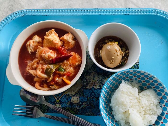 鷹の爪が入っているので、取り除いてお召し上がり下さい。