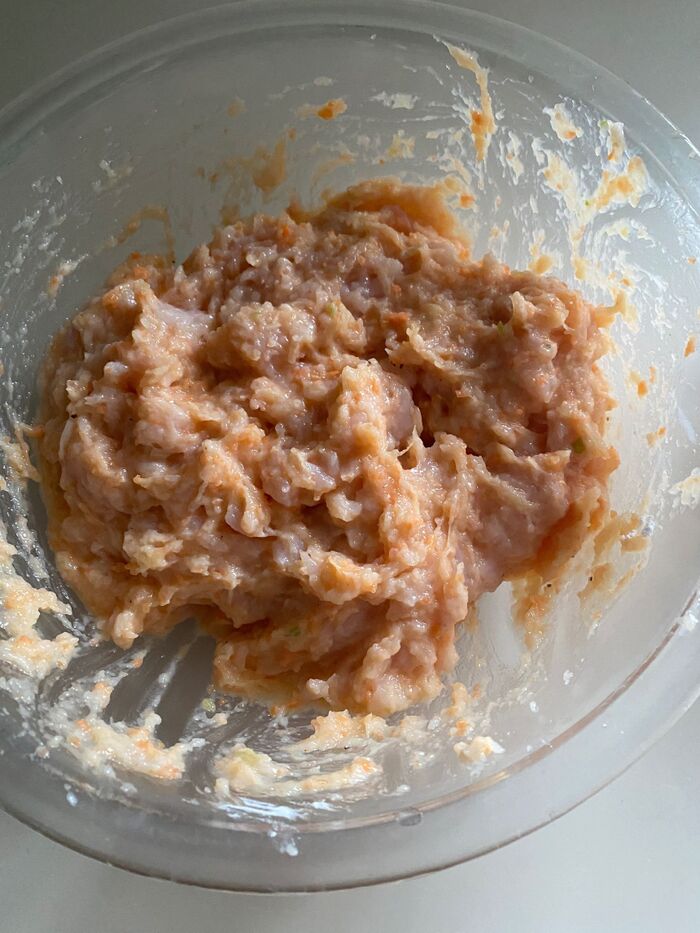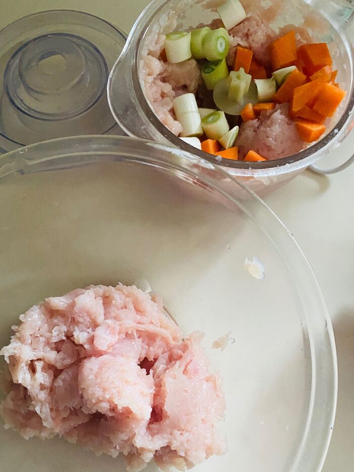 人参、ねぎは大雑把に切ってフードカッターにかけます。