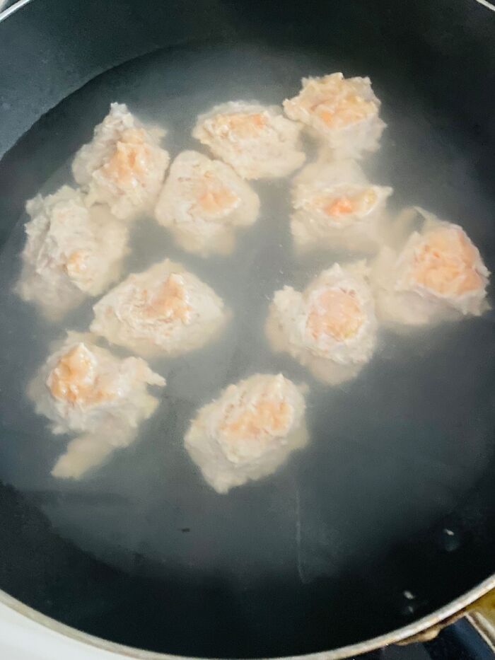 鍋に水を入れて沸騰したら、丸めて入れます。