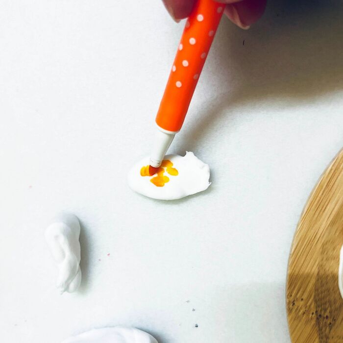 小皿に置いて広げて調整します。