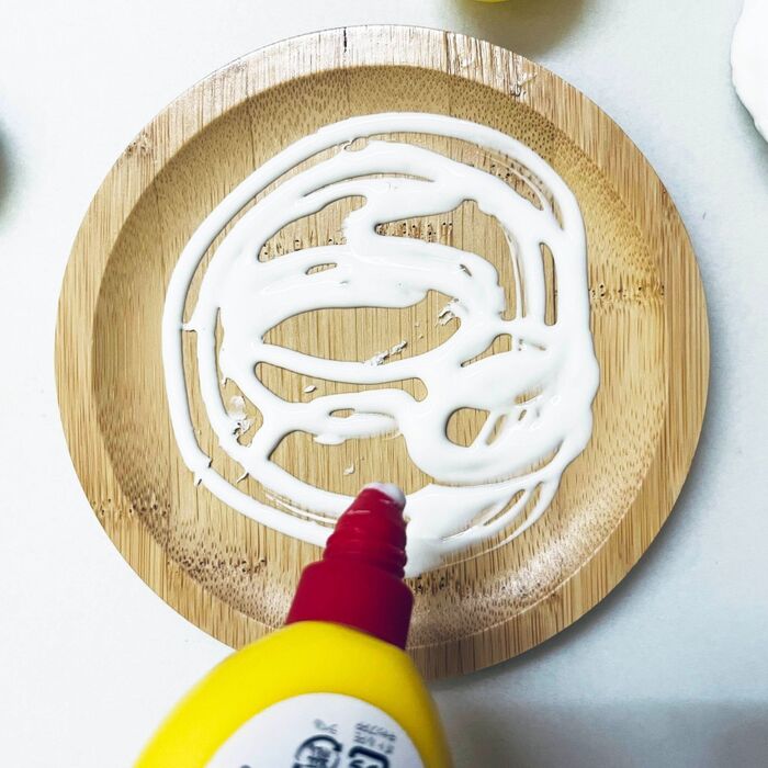 小皿にボンドを塗ります