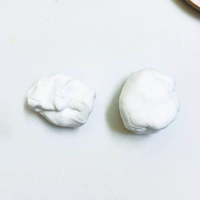 2つに分けた紙粘土1つを