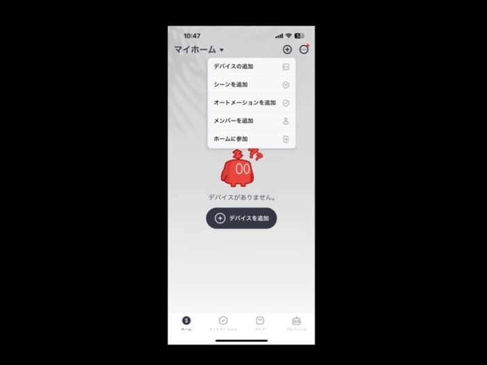 アプリと連携させるためには、デバイスの追加を選び、指示どおりに進めていくだけ。他のアイテムを連携する際もここから始まるようです。