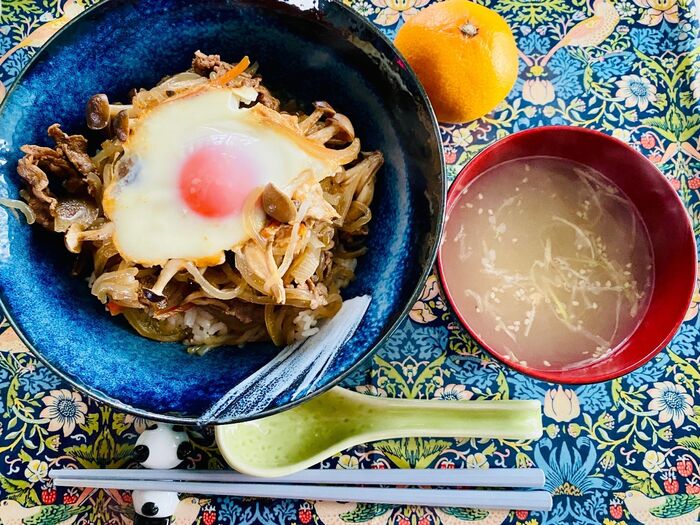 ごま油で炒めているので、普通の牛丼とは違うぞ!と思いますよ。
