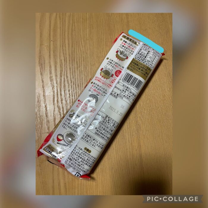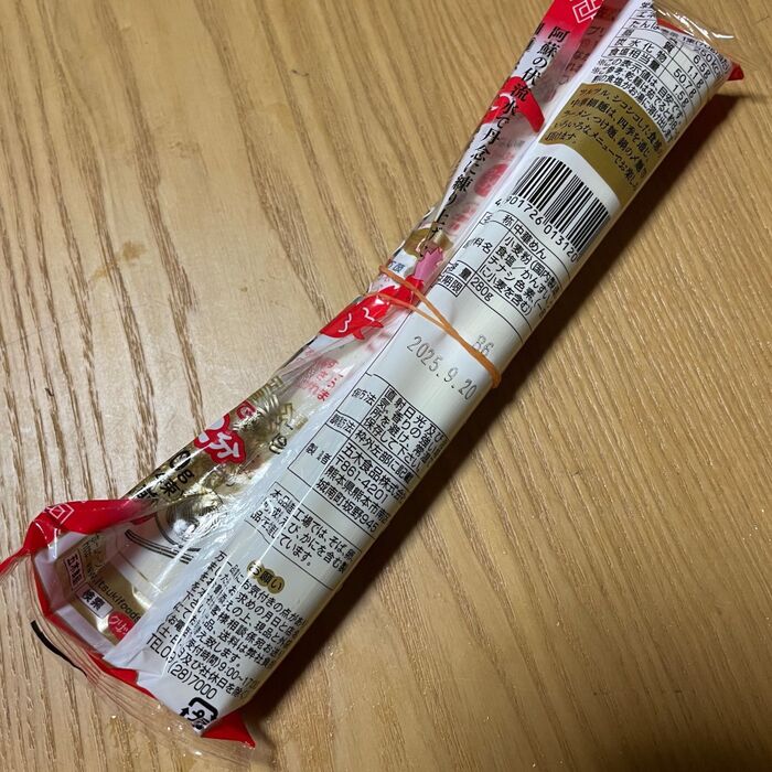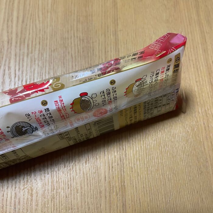 すると、麺を使った分のスペースができるので、袋をクルクルと巻いてうまく袋の口を止めることができます。輪ゴムで止めるのも、テープで止めるのもやりやすいです。
