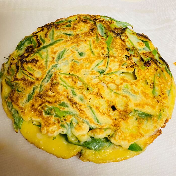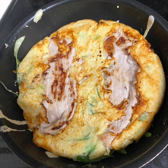 ⑦一口大に切ったチヂミを器に盛り付けます。タレも器に移し添えます。