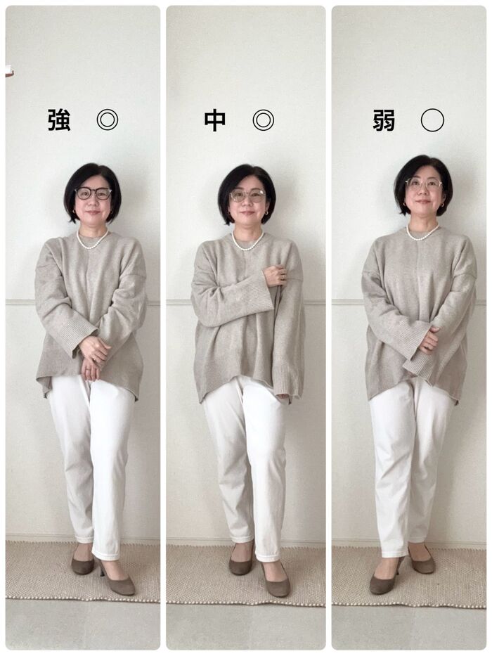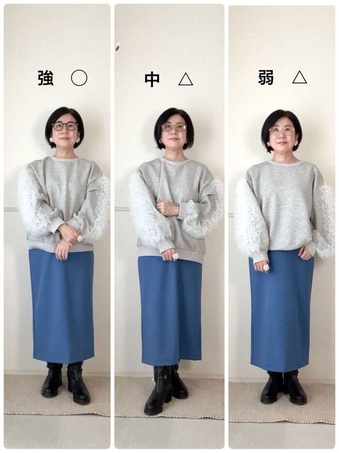 上品さにほんの少しカジュアルテイストも加わったと思います。