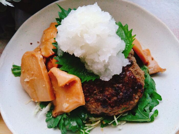 かさ増しに入れた豆腐がハンバーグをふんわりと仕上げてくれる