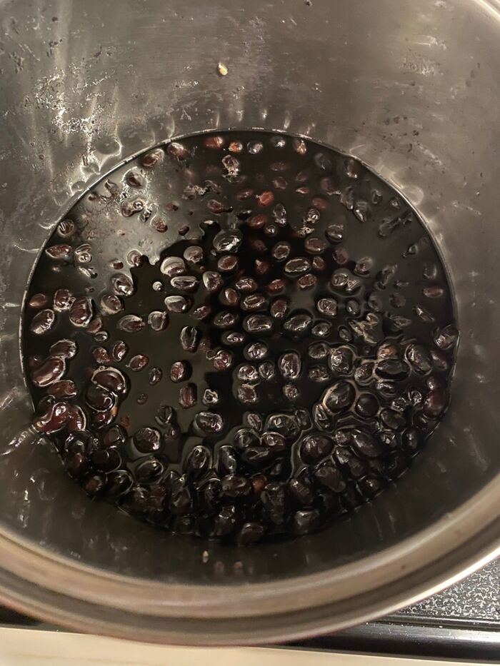 8時間ぐらい煮込むところを3時間ぐらいで黒豆が柔らかく仕上がると思います。