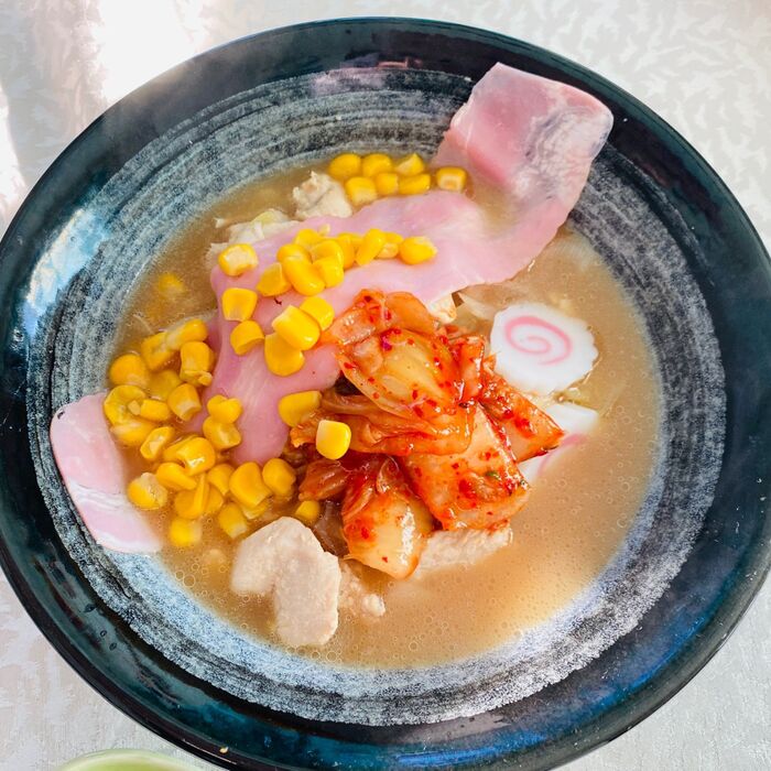 コーン、ベーコン、なると、キムチを乗せ完成!