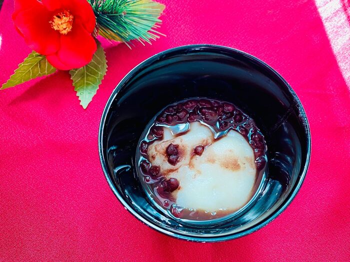 私の育ったところでは、鶏肉だし(またはハゼだし)のお餅と、餡子餅を食べますよ。お餅は角餅です。